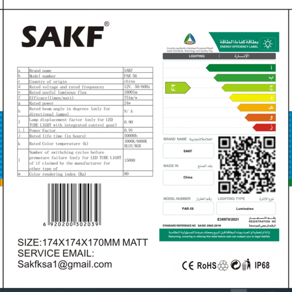شمعة كشاف مسبح قزاز لد 24 واط لون واحد متوفر ازرق او اصفر او ابيض حسب طلب العميلاضاءة تحت الماء UNDERWATERPAR 56LEDIP6824W12V AC1800LM50000H